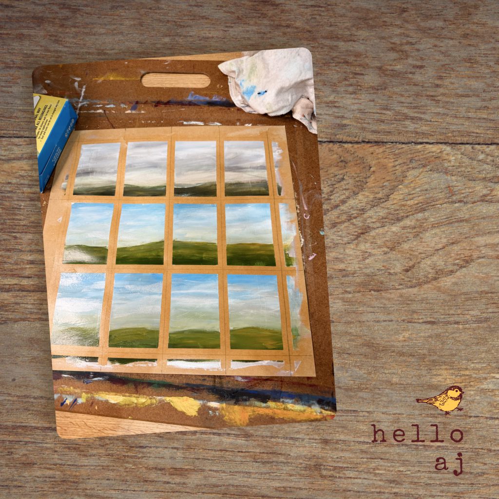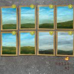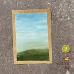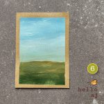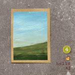 Eight small originals, each one a little different. Same quiet landscape — open fields, wide sky, shifting light. You pick the one that speaks to you.